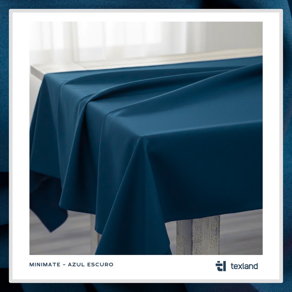 DER Minimat Dunkelblau ist a billiger Stoff, 100% glatt, aber ziemlich resistentes Polyester. Es ist in einer Vielzahl von Farben erhältlich und verfügt über mehrere Anwendungen, die von Kleidung bis hin zur Restaurierung und Gastfreundschaft reichen.