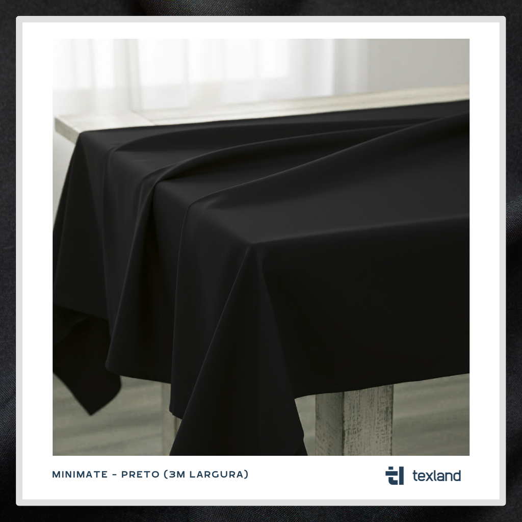 DER Minimat Schwarz ist a billiger Stoff, 100% Polyester, glatt, aber ziemlich resistent. Es ist in einer Vielzahl von Farben erhältlich und verfügt über mehrere Anwendungen, die von Kleidung bis hin zur Restaurierung und Gastfreundschaft reichen.
