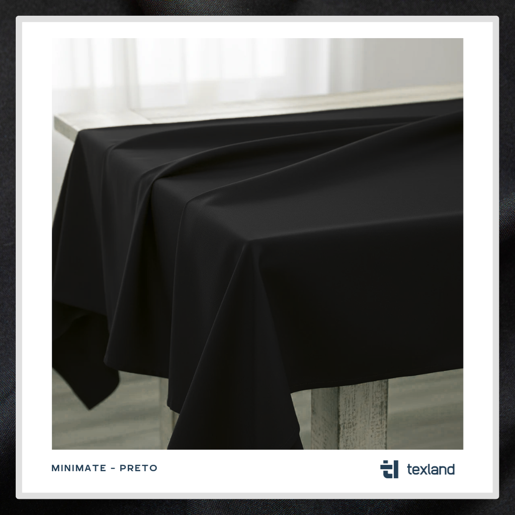 DE Minimaal Het is een goedkope stof, 100% polyester, glad maar zeer resistent zwarte stof. Het is verkrijgbaar in een enorme verscheidenheid aan kleuren en heeft meerdere toepassingen, variërend van kleding tot restauratie en gastvrijheid.